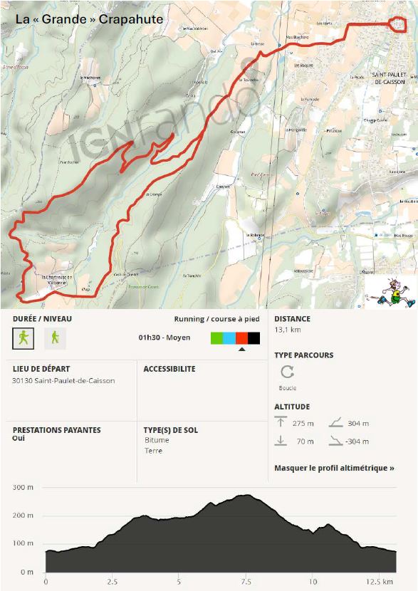 Classement des 13.2 km 2025Tous les résultats sur Evasion Chrono« La Crapahute, la petite course Saint Paulétoise qui monte, qui monte ... »« 2025 .. 161 coureurs .. »Quelques photos de la Crapahute 2025:![]() ![]() ![]() ![]() Article sur le Petit Saint Paulétois 2023 ARCHIVESClassements 2024Classement des 13.2 km 2024Tous les résultats sur Evasion Chrono« La Crapahute, la petite course Saint Paulétoise ... »« 2024 .. 161 coureurs .. »Classements 2023Classement des 13.2 km 2023Classement des 7 km 2023Tous les résultats sur Evasion ChronoClassements 2022Classement général de la Crapahute 2022Tous les résultats sur Evasion ChronoClassements 2019Classement général de la Crapahute 2019Classement par catégorie de la Crapahute 2019Tous les résultats sur Evasion Chrono![]() ![]() ![]() ![]() ![]() ![]() ![]() ![]() ![]() ![]() ![]() ![]() ![]() ![]() Le groupe des organisateurs 2019 ![]() ![]() Le groupe des organisateurs 2014 à la Crapahute dans la magnifique foret de la Valbonne. Le tout dans une ambiance conviviale, un parcours agrémenté de 4 ravitaillements sans oublier les lots originaux à chaque partant. Amis coureurs, amis marcheurs, amis sportifs à partir de 16 ans, prenez note : le parcours des As de 13,2 kms (départ 9h45) apprécié de tous et la marche (départ 8h30) sont au programme. Notez Bien : certificat médical ou licence obligatoire pour tous les coureurs. Age minimum 16 ans. D'année en année, nous constatons votre fidélité à venir participer à cette course et pour nous, organisateurs, c'est une très grande satisfaction. L'important, à la Crapahute, ce n'est pas de gagner, mais c'est de participer et cela en toute convivialité.