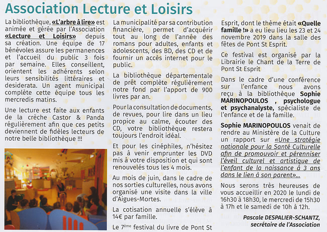 L'accès à la Bibliothèque Municipale " l'Arbre à Lire " et la consultation sur place des documents sont libres et ouverts à tous.