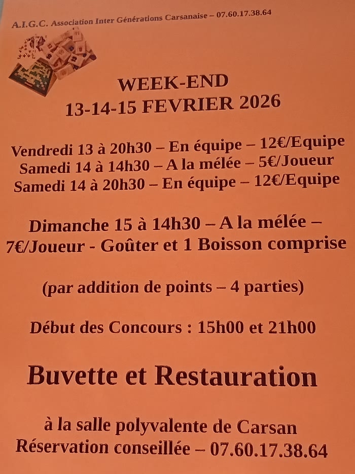 Vendredi 13 - Samedi 14 et Dimanche 15 février