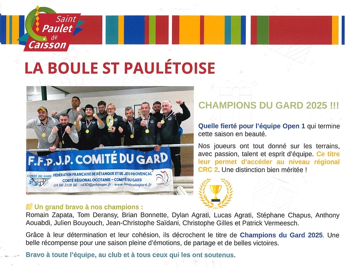 La Boule Saint Paulétoise pour l'année 2024/2025
